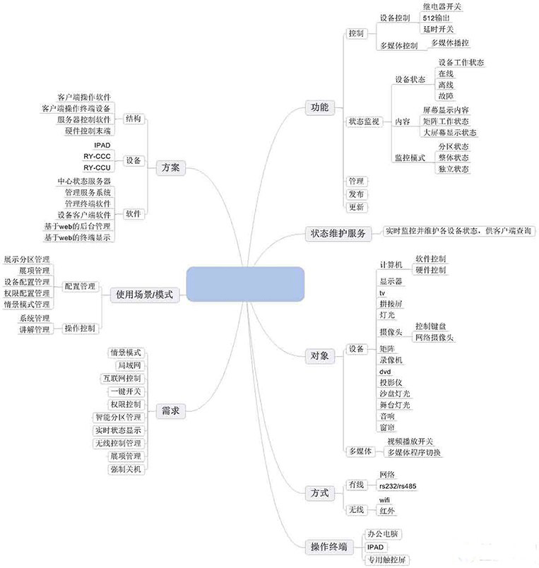 組成:展廳中央控制系統(tǒng)一般由四部分組成—1. 用戶界面 2.中央控制主機(jī) 3.各類控制接口 4.受控設(shè)備